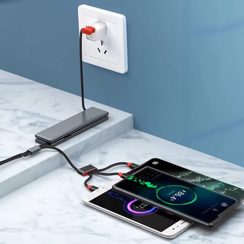 3 in 1 multi USB charging cable, All in a Magic box, Nylon Braided Fast Charging Cables ,Compatible with Micro USB/Type-C/I-Products Devices ,Support 3 Devices Charging at the same time. Short cable which do not take any space, portable and lightweight, It is the best travel choice! No more tangled